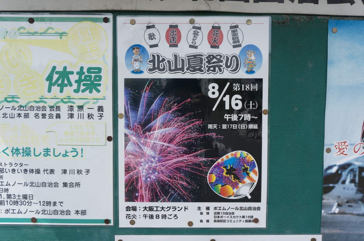 ■08/16Sat/枚方市北山1-79大阪工業大学枚方キャンパスグラウンド 「第18回 北山夏祭り」19:00~、花火20:00頃~